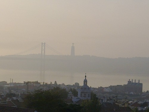 Em contrapartida, aqui, o que se vê é mais um Tejo dorminhoco, a esbracejar e a revolver-se no lençol das suas margens, a pedir só mais uns minutos de sono, se calhar mais em conformidade com a nossa condição.