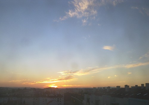 O primeiro pôr-do-sol, há instantes, desde o Montijo.