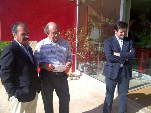 O Presidente da Câmara, José Marques e Fernando Carvalho da equipa de directores do Hotel de Santa Margarida, em Oleiros, numa visita guiada à exposição A ARTE NÃO EXISTE- A ARTE SOMOS NÓS.